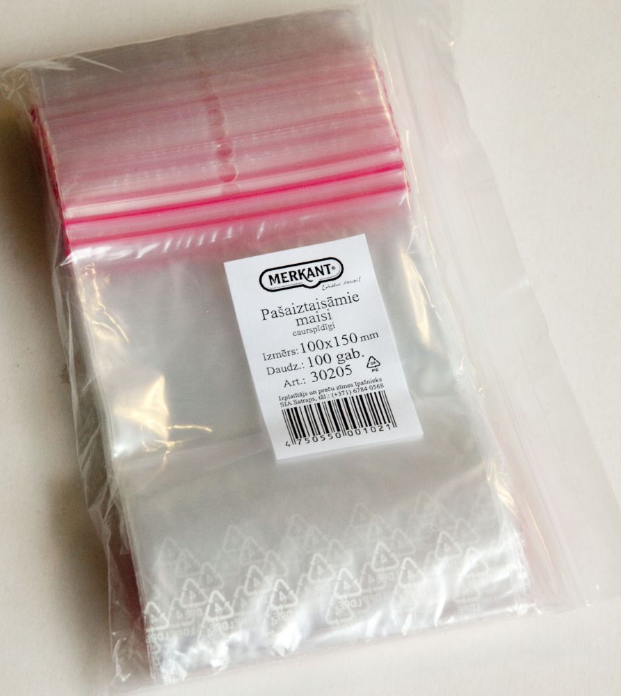 Zip Lock maisiņi 100 x 150 mm 100 gab