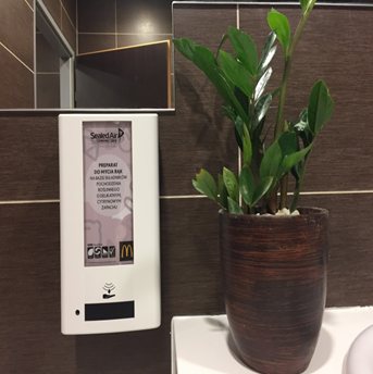 Bezpieskāriena dozators - pirmais pasaulē hibrīda turētājs roku higiēnai. Melnā un baltā krāsā