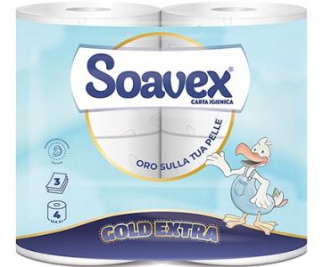 Tualetes papīrs SOAVEX Gold Extra, 3 slāņu, 4 ruļļi, celuloze, 350 loksnes, 42m