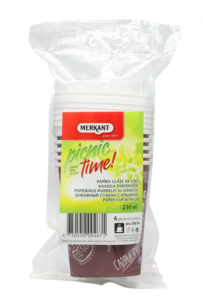 Papīra glāzes 230ml ø80mm 1sl, komplekts ar vāku, 6 gab.