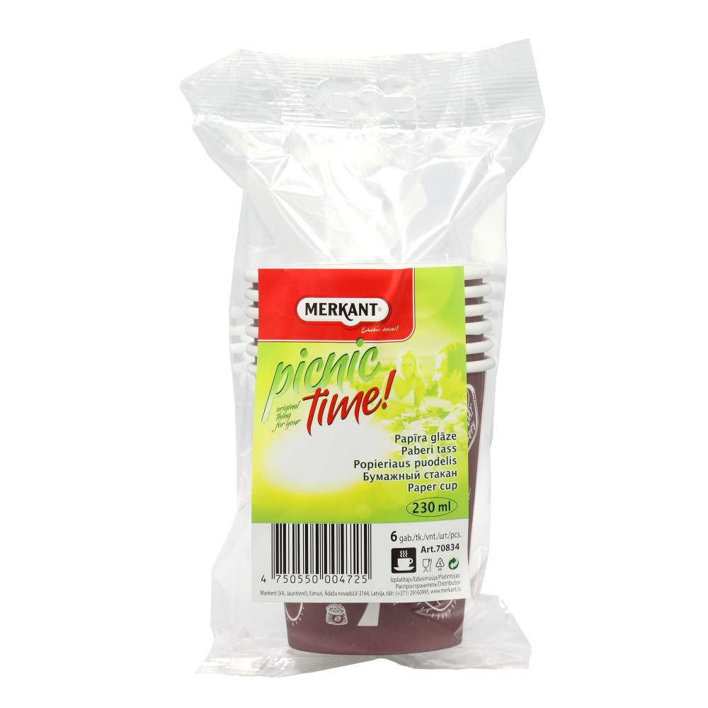 Papīra glāzes 230ml ø80mm 1sl, 6 gab.