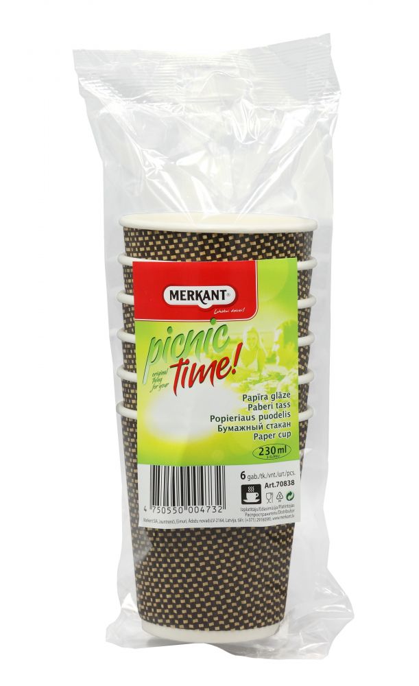 Papīra glāzes 230ml ø80mm 3sl, 6 gab.