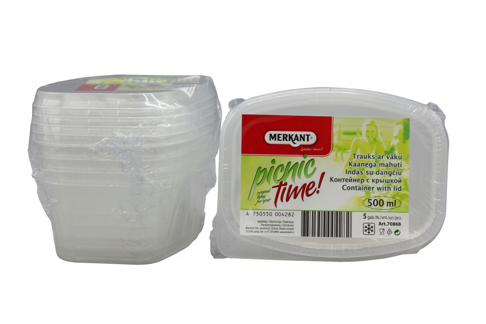 Trauks ar vāku ēdiena uzglabāšanai un saldēšanai 500ml, PP, 5 gab.